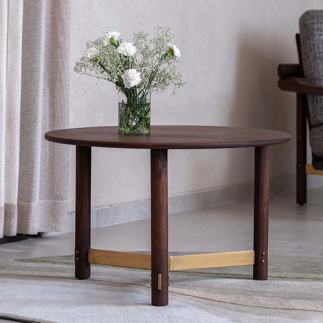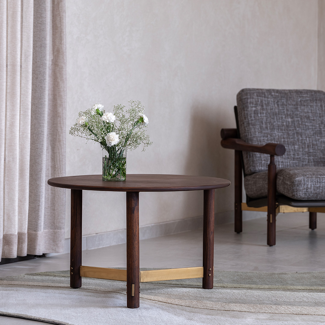 Compact and purposeful, the Arq Side Table is designed to slip seamlessly into any corner. Its wooden frame is accented with subtle brass-finished details, giving it a refined edge. Ideal for holding a book, a cup, or a decorative accent, it adds quiet charm and luxury to your space.
