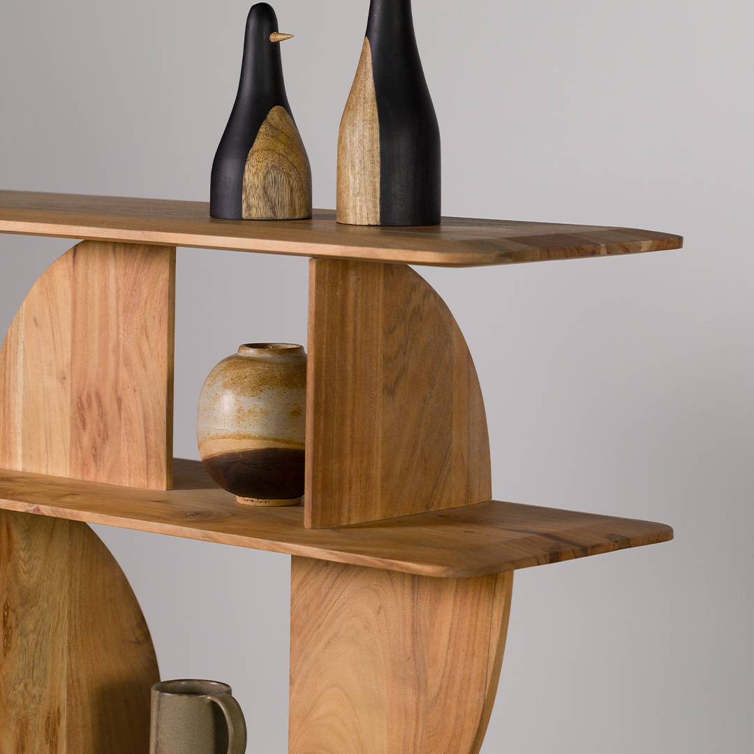 A beautifully designed open bookshelf that invites you to showcase your world. Balancing structure with airiness, this half moon shelves provides ample space for books, art, and curated décor. Designed for those who appreciate both form and function, it serves as an elegant statement piece while keeping your treasured collections within easy reach. Its timeless aesthetic and sturdy construction ensure it remains a stylish yet practical fixture in any home or office.
