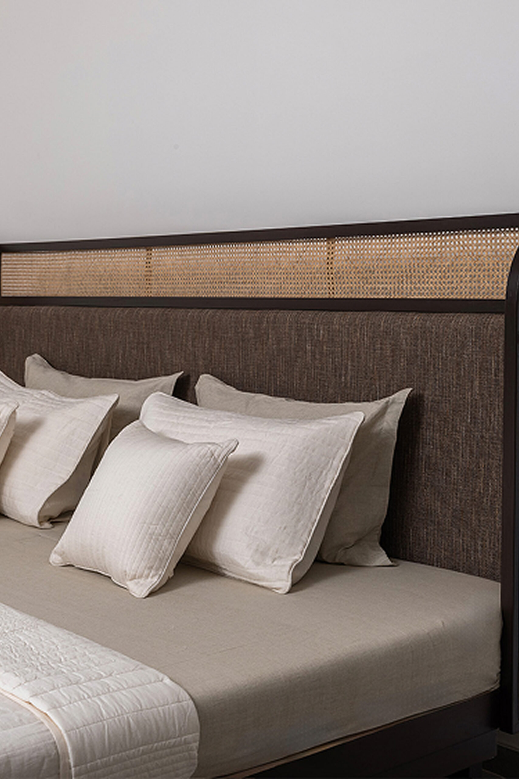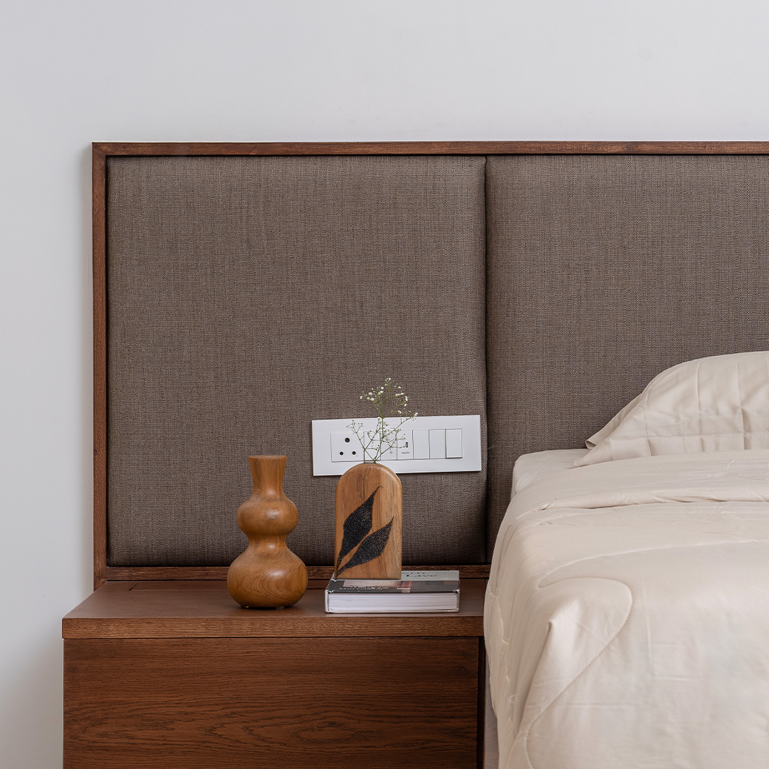 The Lumora Bed from the Picasso Collection is crafted from solid teak wood, featuring a cushioned headboard that adds texture and warmth. Its clean lines and grounded proportions create a restful focal point for the bedroom. Combining durability with quiet details, it reflects timeless design suited to both modern and classic interiors.