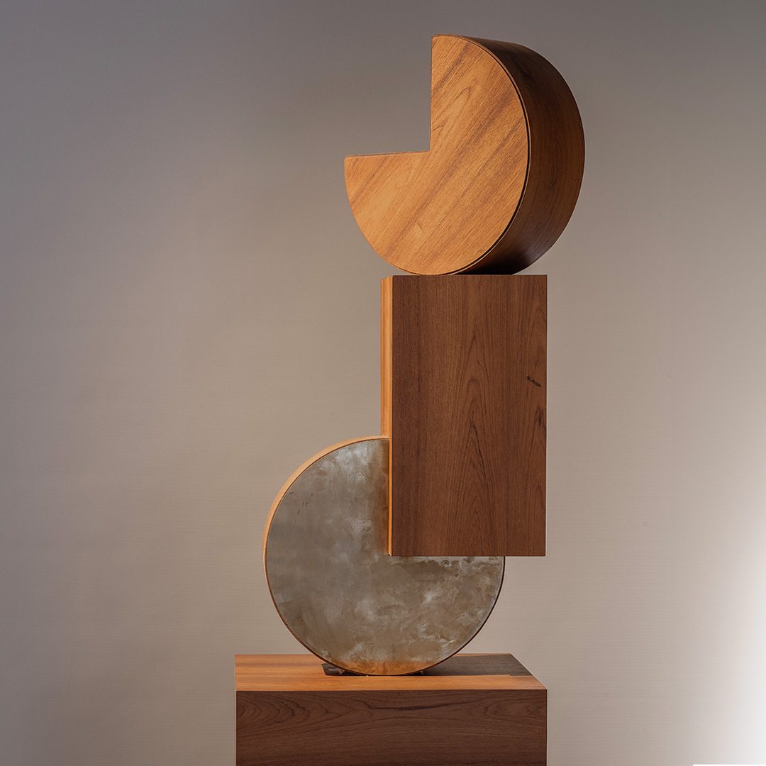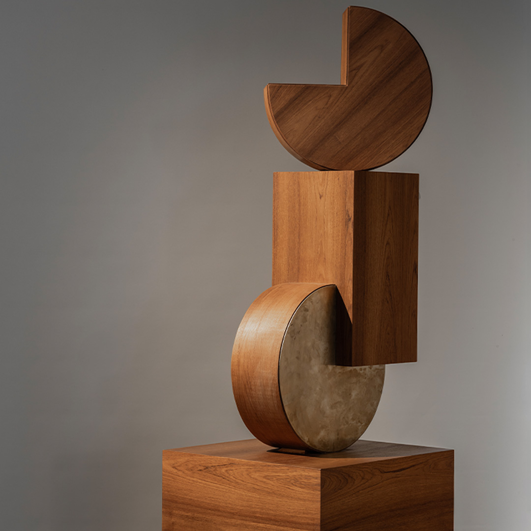 The Pac Floor Décor stands as a sculptural accent, crafted in wood with brass-finished detailing. Its stacked geometric forms create a striking vertical composition, adding depth and character to interiors. More than decorative, it serves as a piece of art that elevates the room with its presence.
