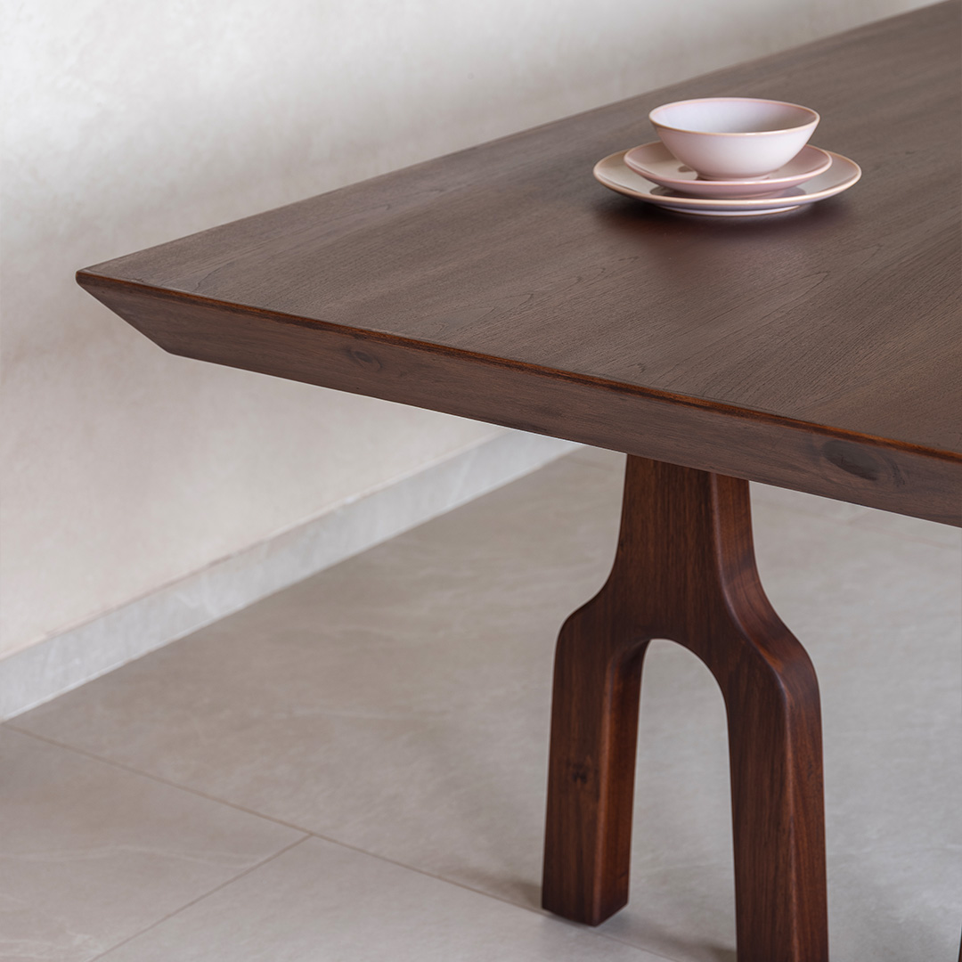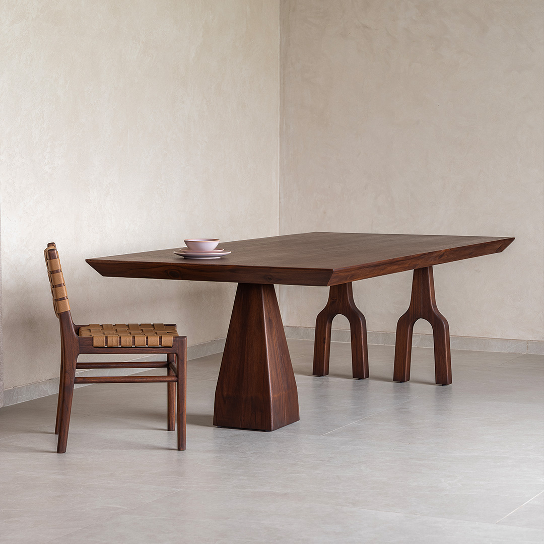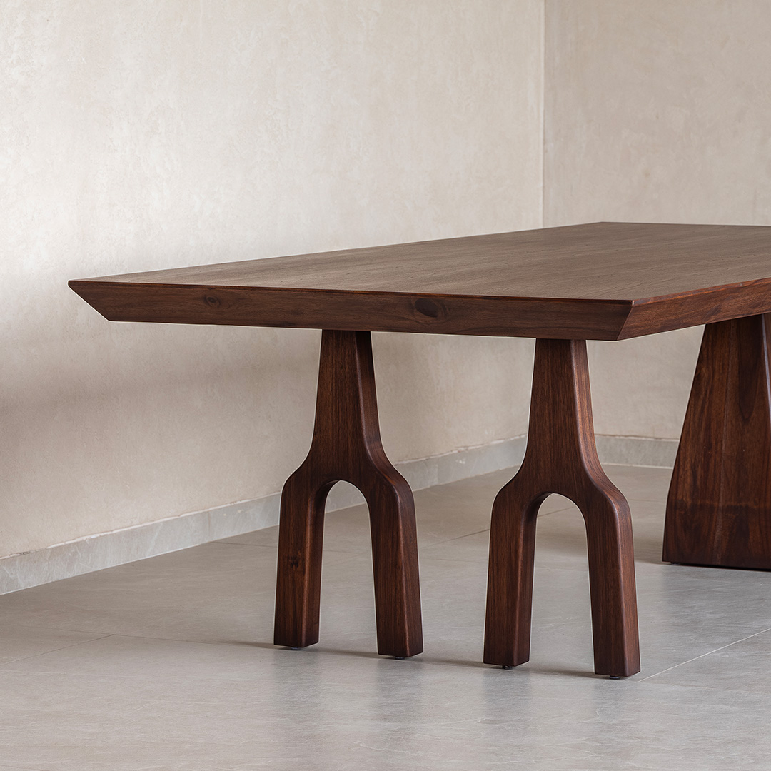 The Vana Dining Table is defined by its bold wooden base and expansive top, creating a setting that feels both grounded and inviting. Crafted in wood with refined detailing, it offers a sturdy foundation for everyday meals as well as special gatherings. Its sculptural form adds character while remaining versatile across interiors.